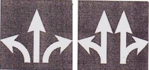 | لافتة إرشاد قبل المفترق : تُظهر شكل المفترق . سهم عريض : طريق رئيسية - سهم رفيع : طريق ثانوية . | لافتة إرشاد قبل محول في طريق سريعة . | مكان وقوف لمركبة معاق - مشلول الأرجل |