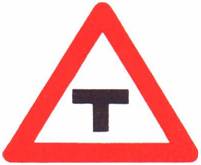 | اندماج شارع فيه حق الأولوية مع طريق جانبية من اليمين (ممنوع الاستدارة إلى الطريق الجانبية) |