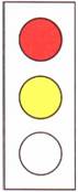 | ((ضوء أحمر)) قف ! و إذا وُسم خط وقوف فتوقف قبل خط الوقوف ، فإذا لم يوجد فقف قبل ممر المشاة ، أما إذا لم يوسم خط وقوف أو ممر مشاة فقف بجانب الآلة الضوئية القريبة |