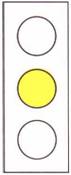 | ((ضوء أصفر)) على من يقترب من المفترق أن يقف كما ذُكر بالنسبة للشاخصة هـ-1 ، إلا إذا لم يكن بإمكان السائق أن يتوقف بأمان قبل المفترق وعلى من دخل المفترق أن يخليه فوراً |