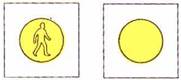 | آلة ضوئية خاصة للمركبات قبل منعطف أو تحذير عام أو قبل ممر مشاة ضوء اصفر متقطع مع أو بدون شكل ماشي (أ) تقدم بحذر مع مراعاة أحكام الشاخصات . (ب) إذا أُقيمت آلة ضوئية للمشاة بجانب ممر المشاة فعلى سائق المركبة أن يُمَكِن الماشي من عبور الشارع بأمان . |