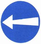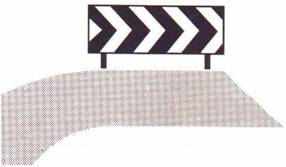 | شاخصة تحذير وإرشاد في منعطف حاد : على سائق المركبة أن يتمهل بالسير ويتابع سيره بالاتجاه الموسوم باسهم على الشاخصة. في الأمكنة التي تنفذ فيها أشغال على الطريق تكون الألوان برتقالي - ابيض. | ||