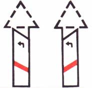 خط مستطيلات : يشير إلى تغيير وجهة المسلك وذلك للاستدارة إلى اليمين أو إلى اليسار فقط . |