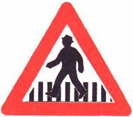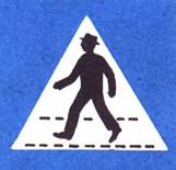 مكان عبور للمشاة : إذا قُسِّم مكان العبور إلى قسمين ، فعلى الماشي أن يعبر من القسم الأيمن لمكان العبور . |