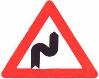 | انعطاف شديد الالتواء نحو اليمين | انعطاف إلى اليمين وثم إلى اليسار | طريق ملتوية |