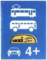 | يجوز السفر في الشارع أو في المسلك للقطار الخفيف وللباص والصالون العمومي وللمركبات التي تنقل على الأقل عدد الركاب المذكور في الشاخصة | أعطِ حق الأولوية لحركة السير في الطريق القاطعة أمامك | قف ! وأعطِ حق الأولوية لحركة السير في الطريق القاطعة أمامك |